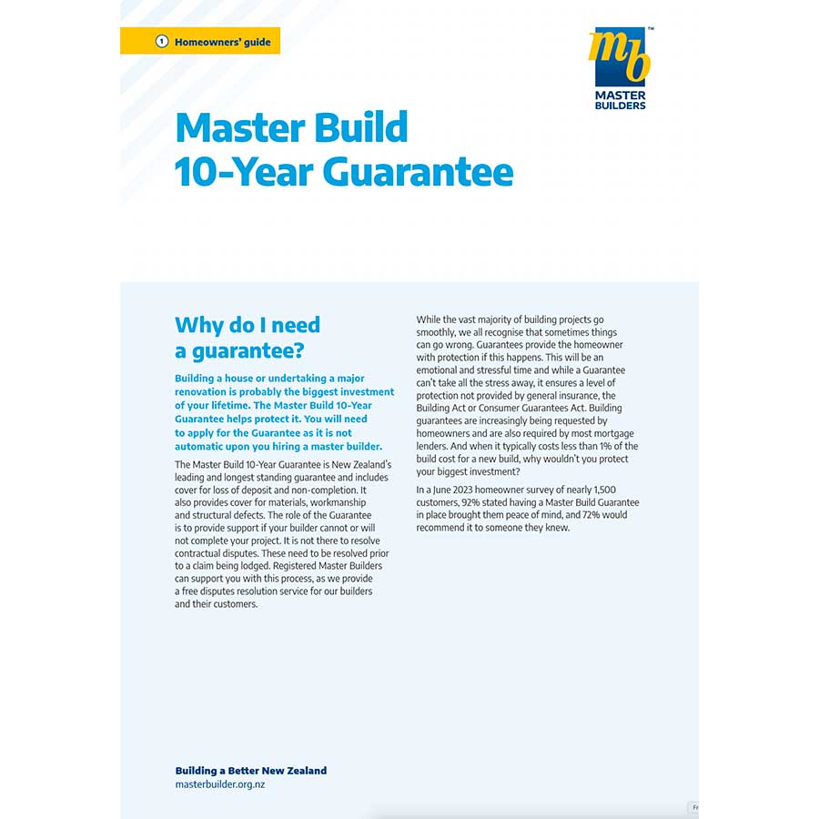 We offer the 10 year master builder guarantee on all projects. This provides peace of mind on project completion and workmanship.